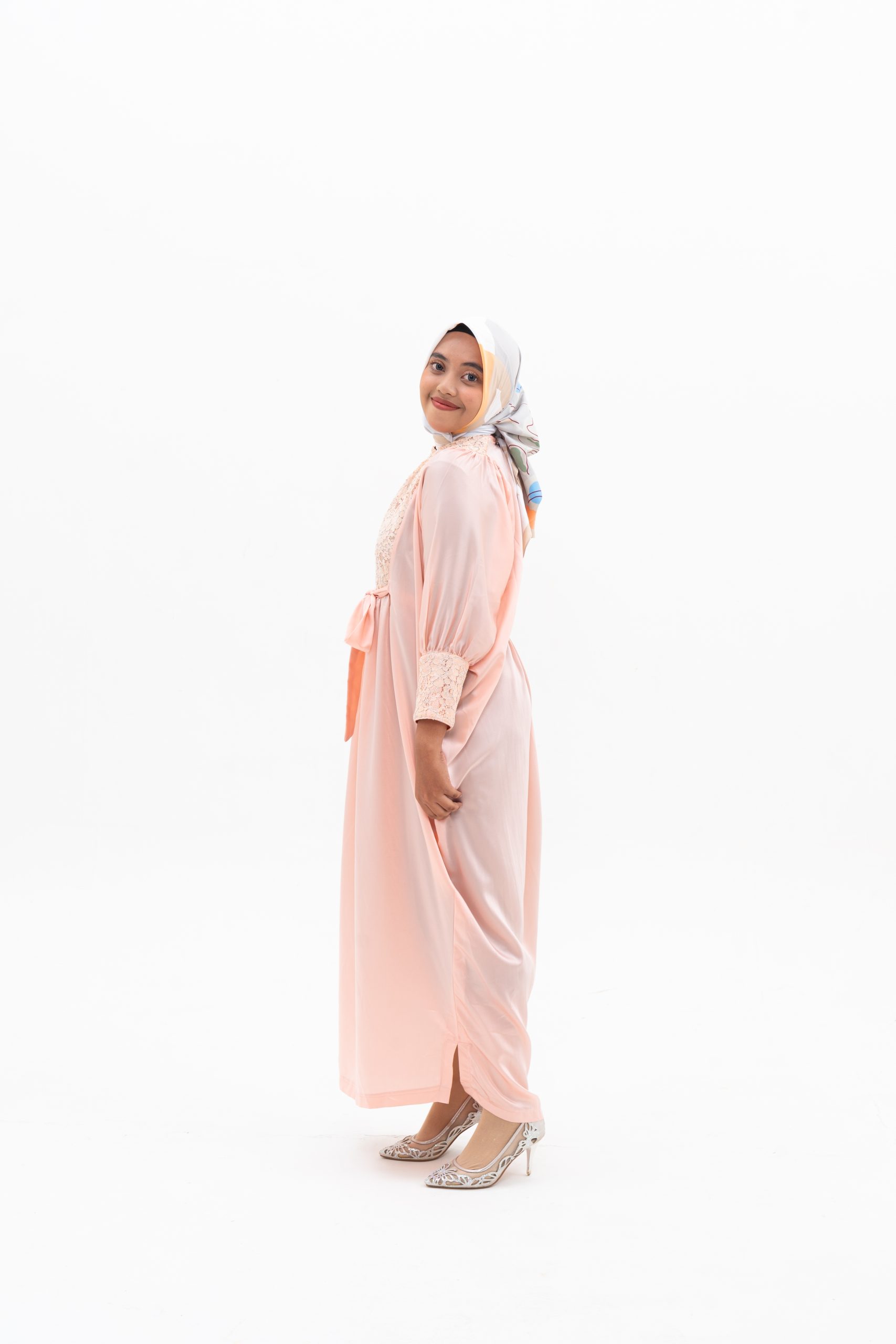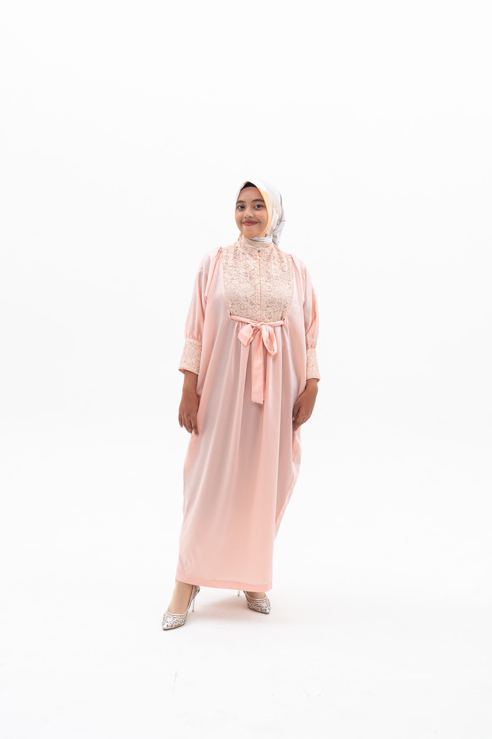 – Variasi cantik ikat tali pita diantara bagian bawah dada / badan, melingkar kebelakang,