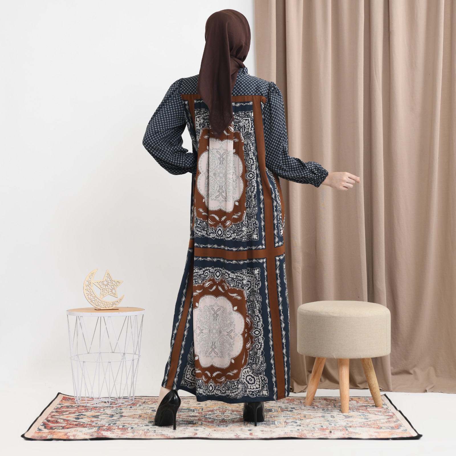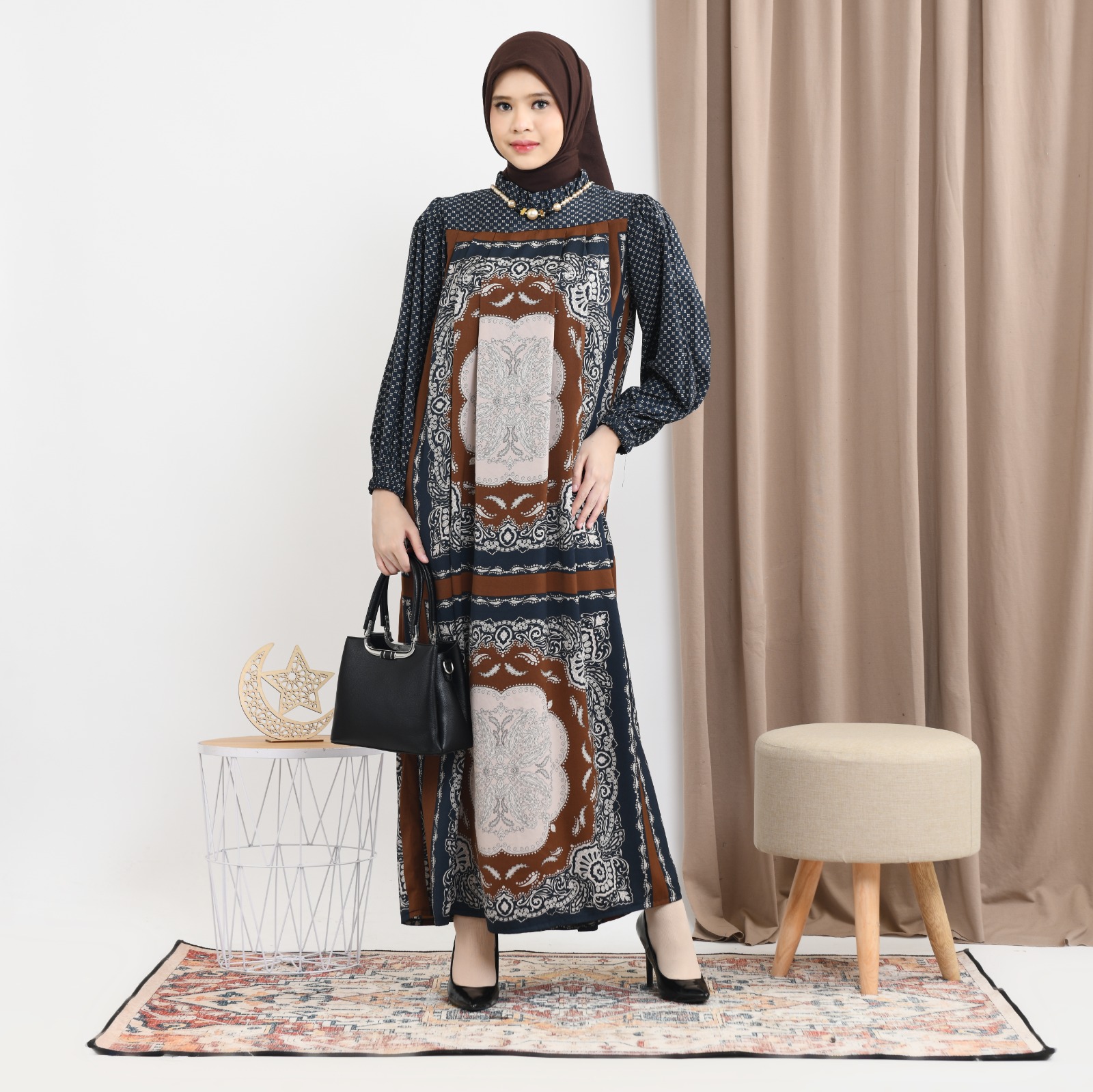 Motif cetak khas menambah daya tarik unik pada setiap detailnya.