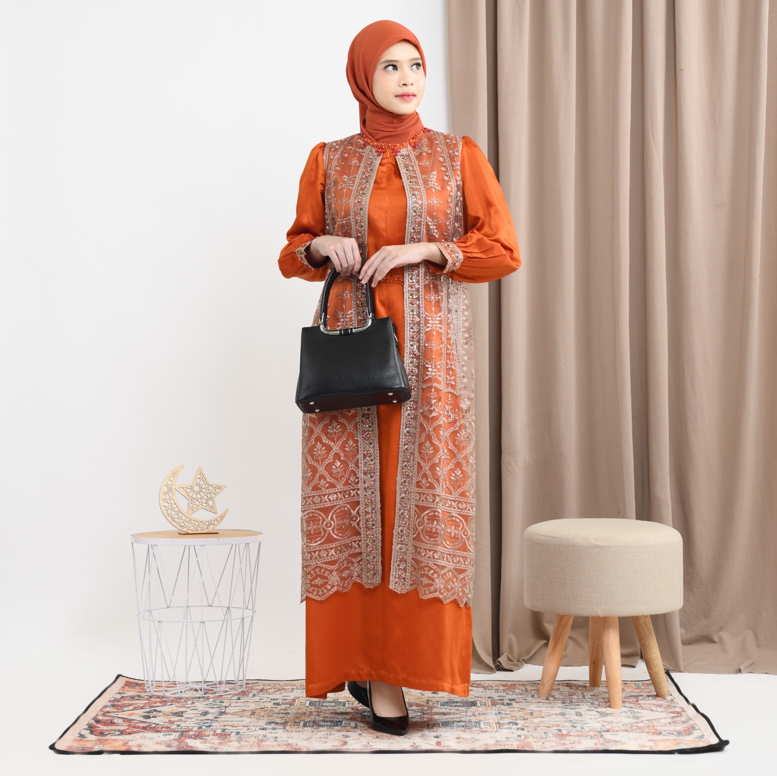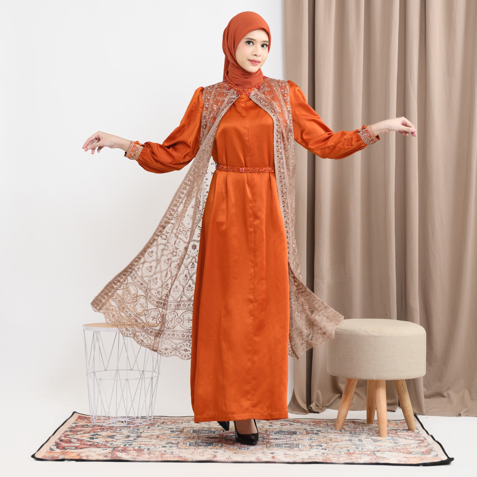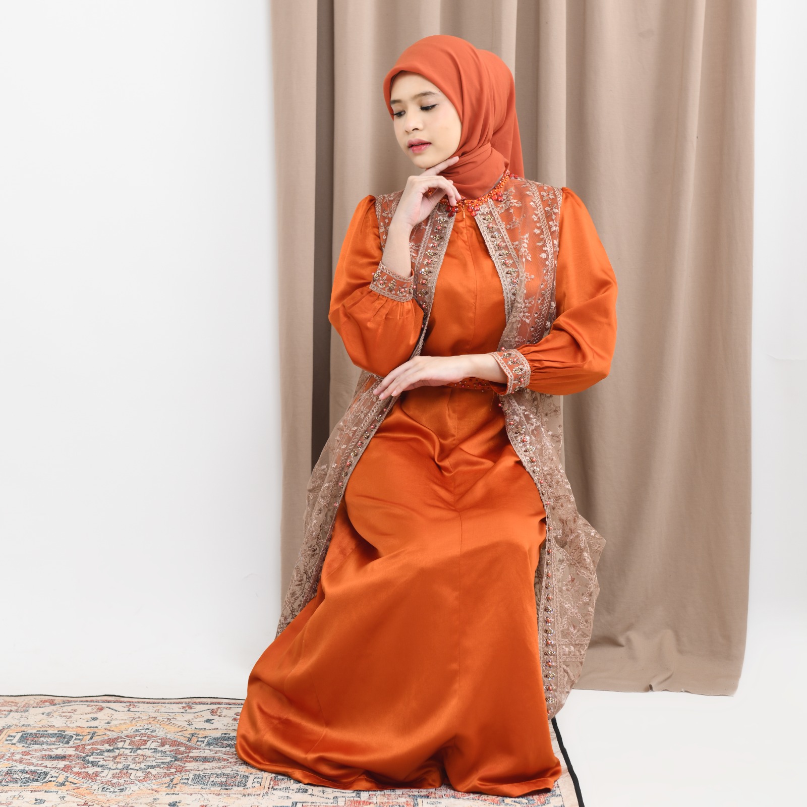 Ridwan & Rahma Fildzah Dress Silk Polos mix outer brocade dengan 4 varian warna elegan