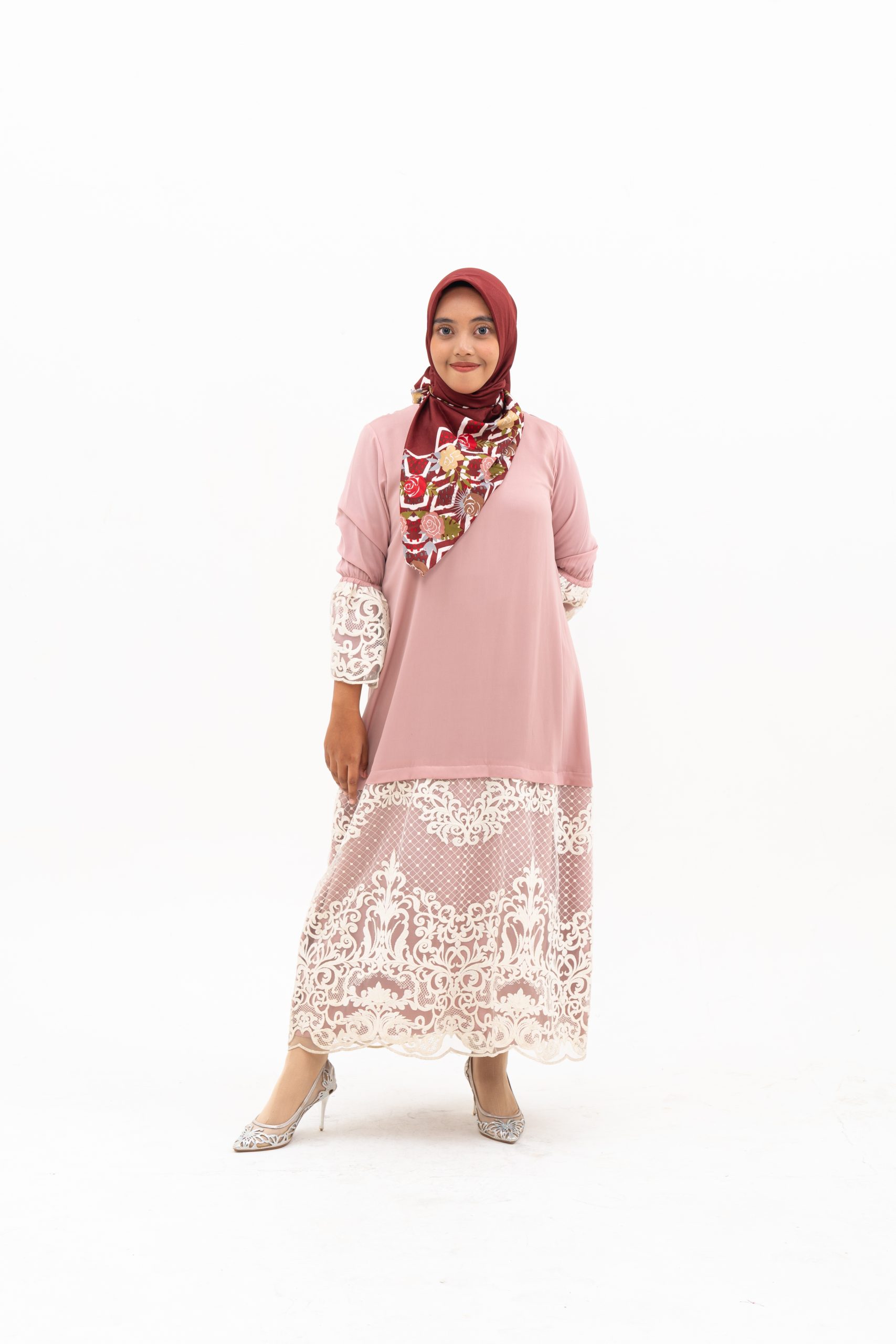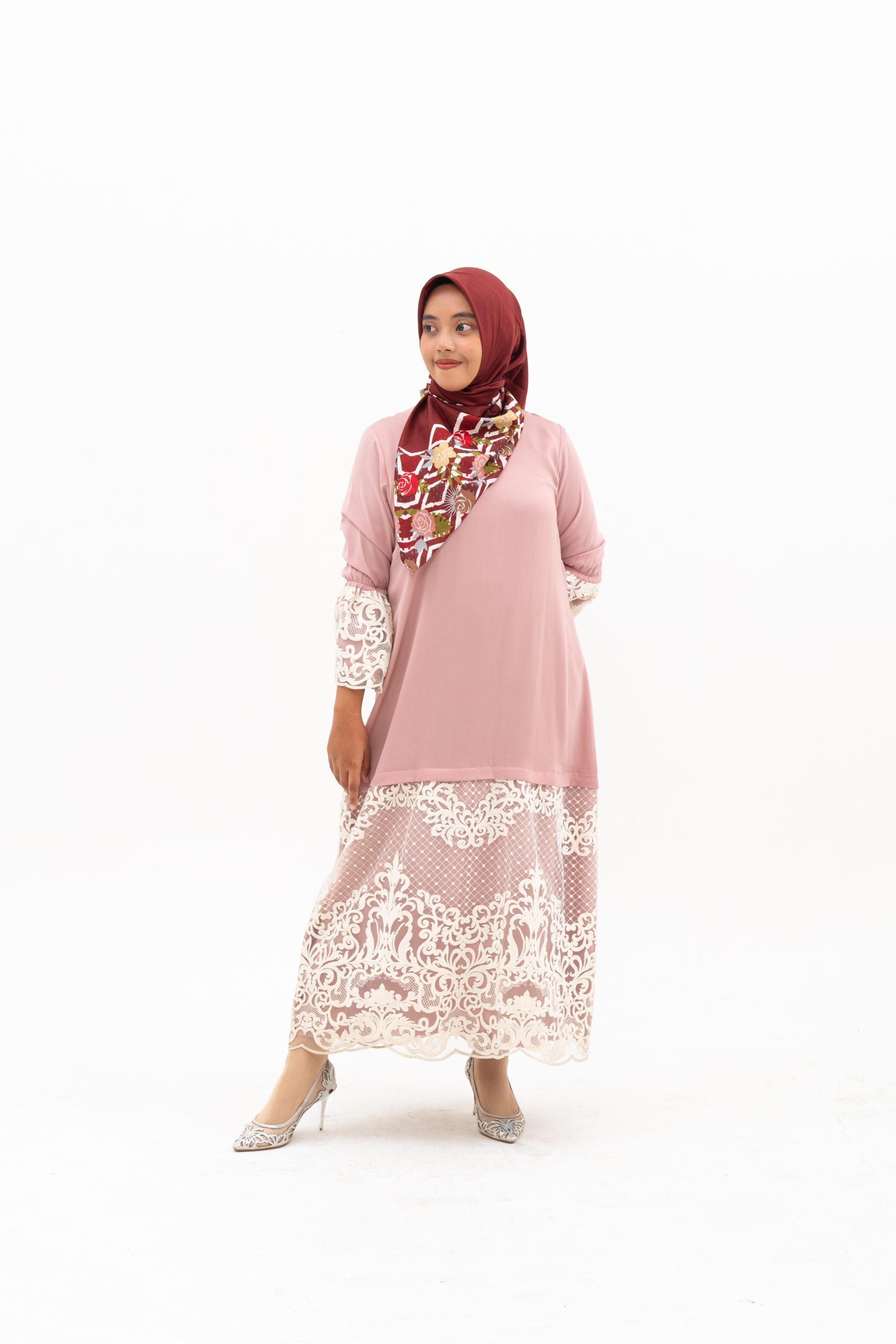 2 reviews for Kenanga dress kombinasi brokat lengan model lonceng dengan tile
