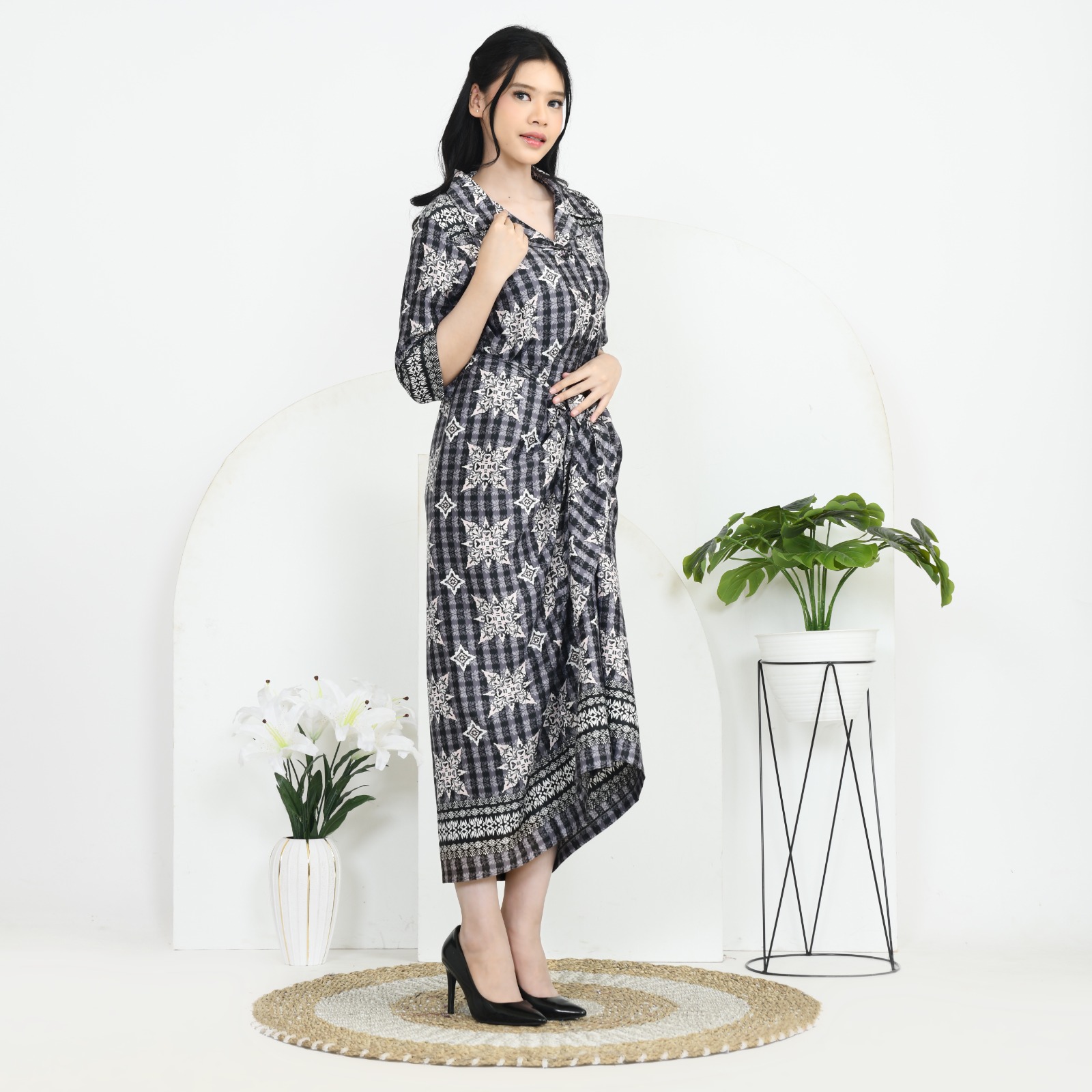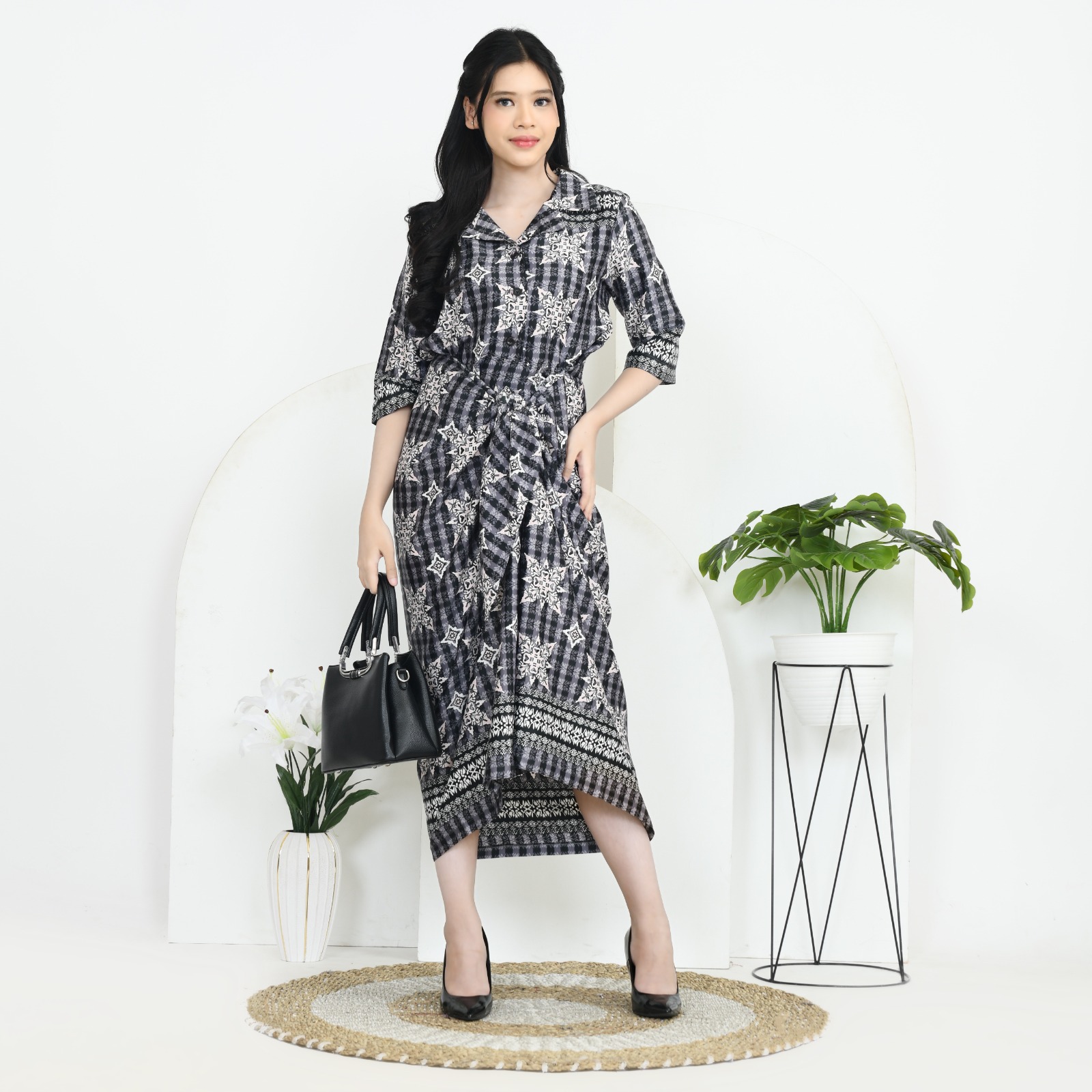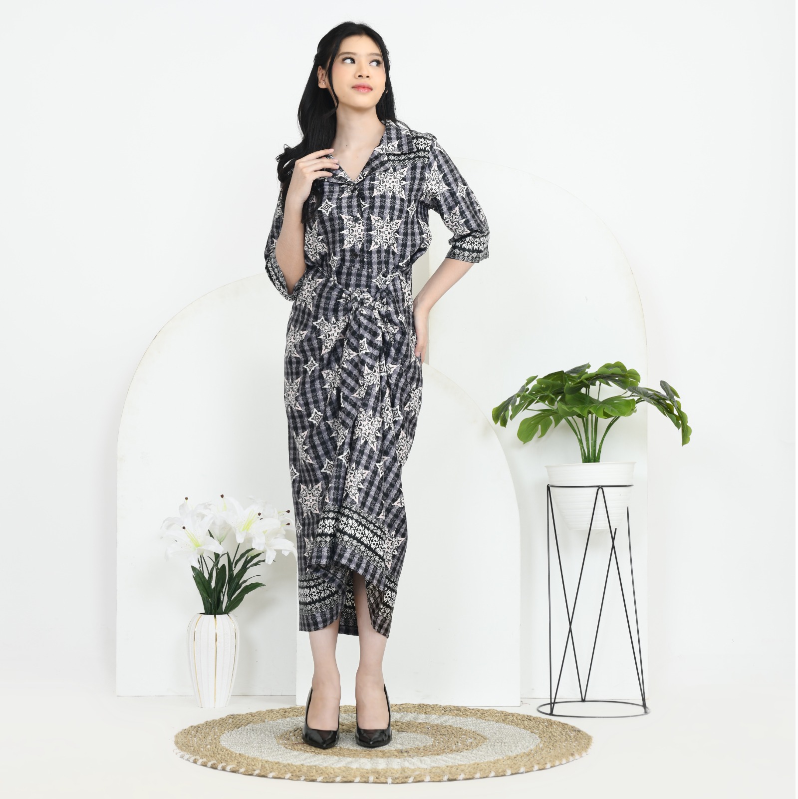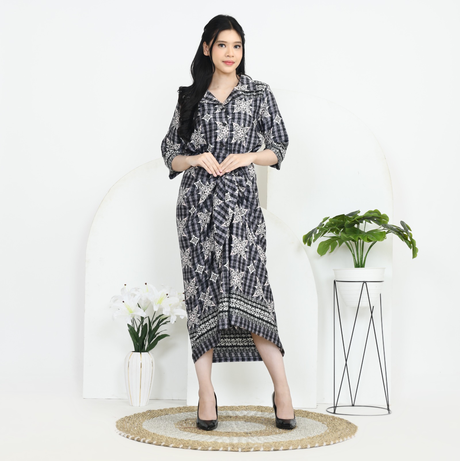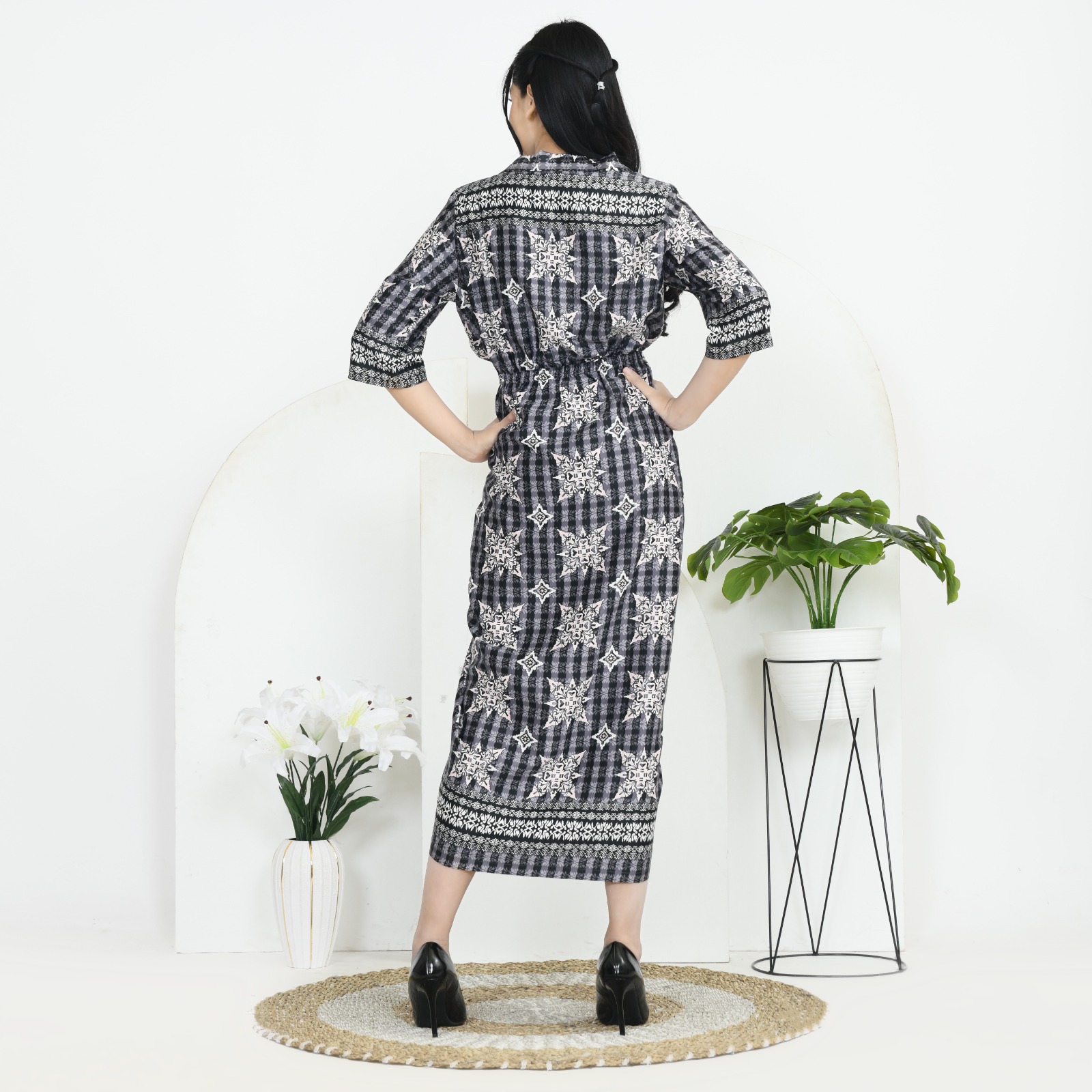 Deskripsi     : Gaun Midi Elegan dengan Desain Unik