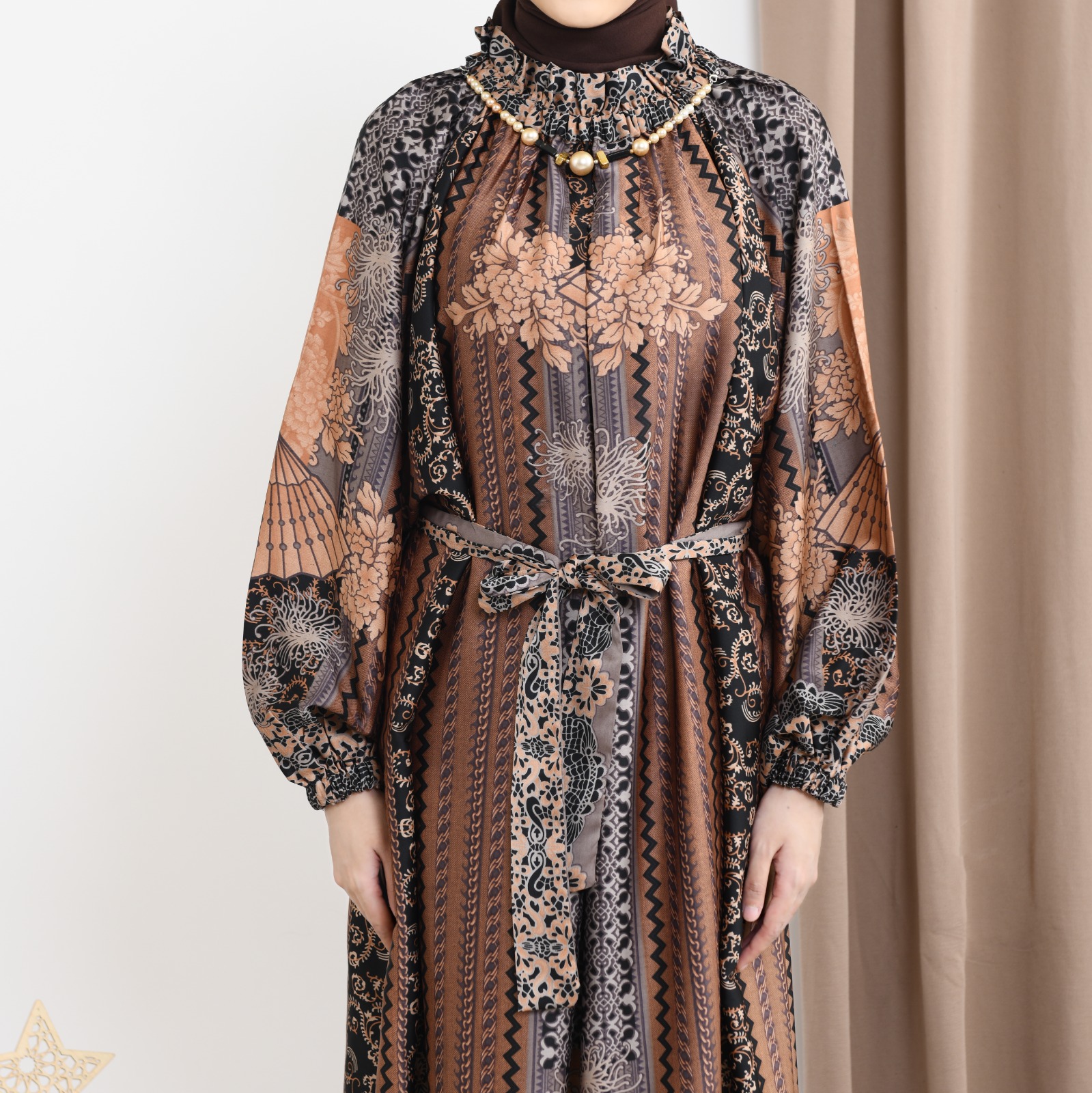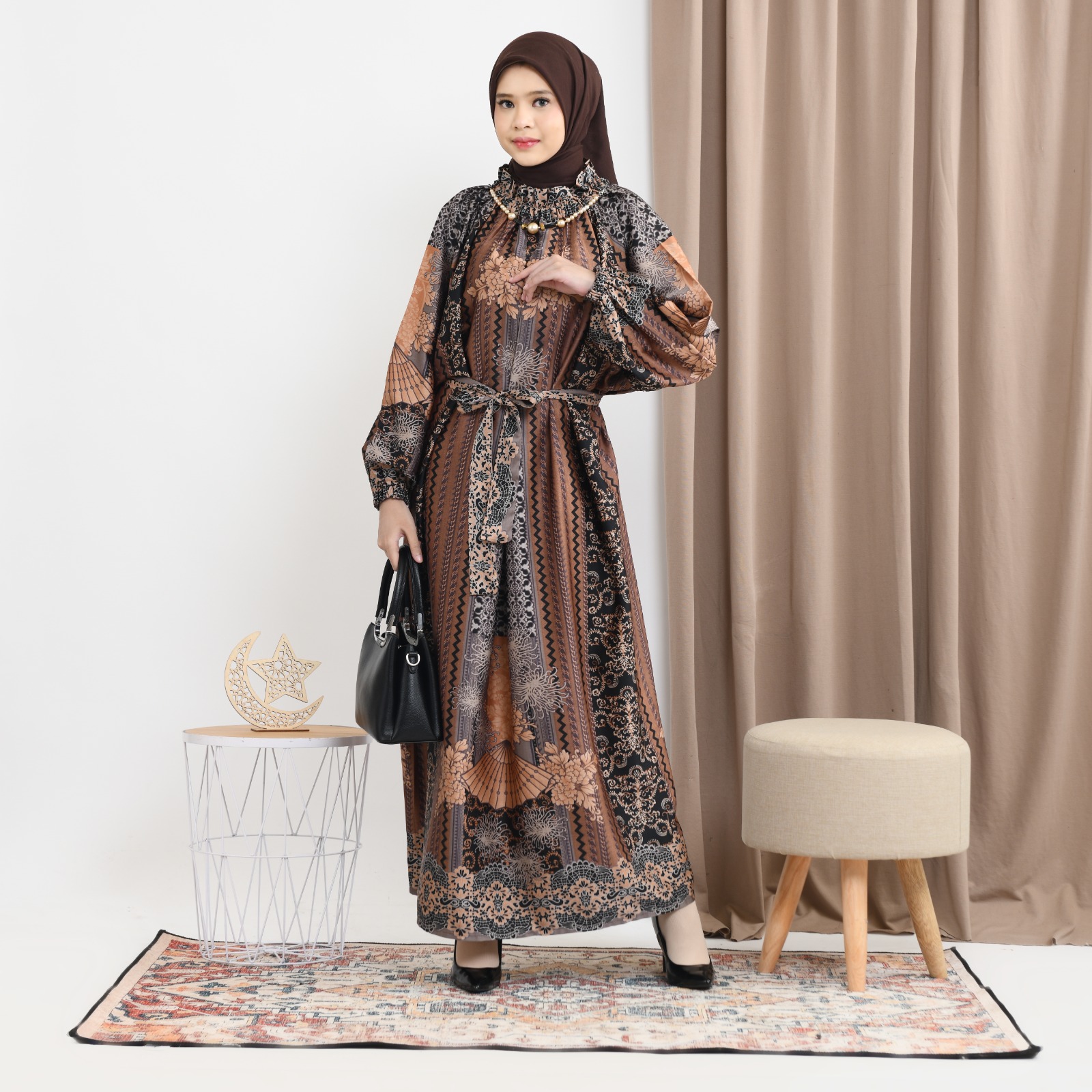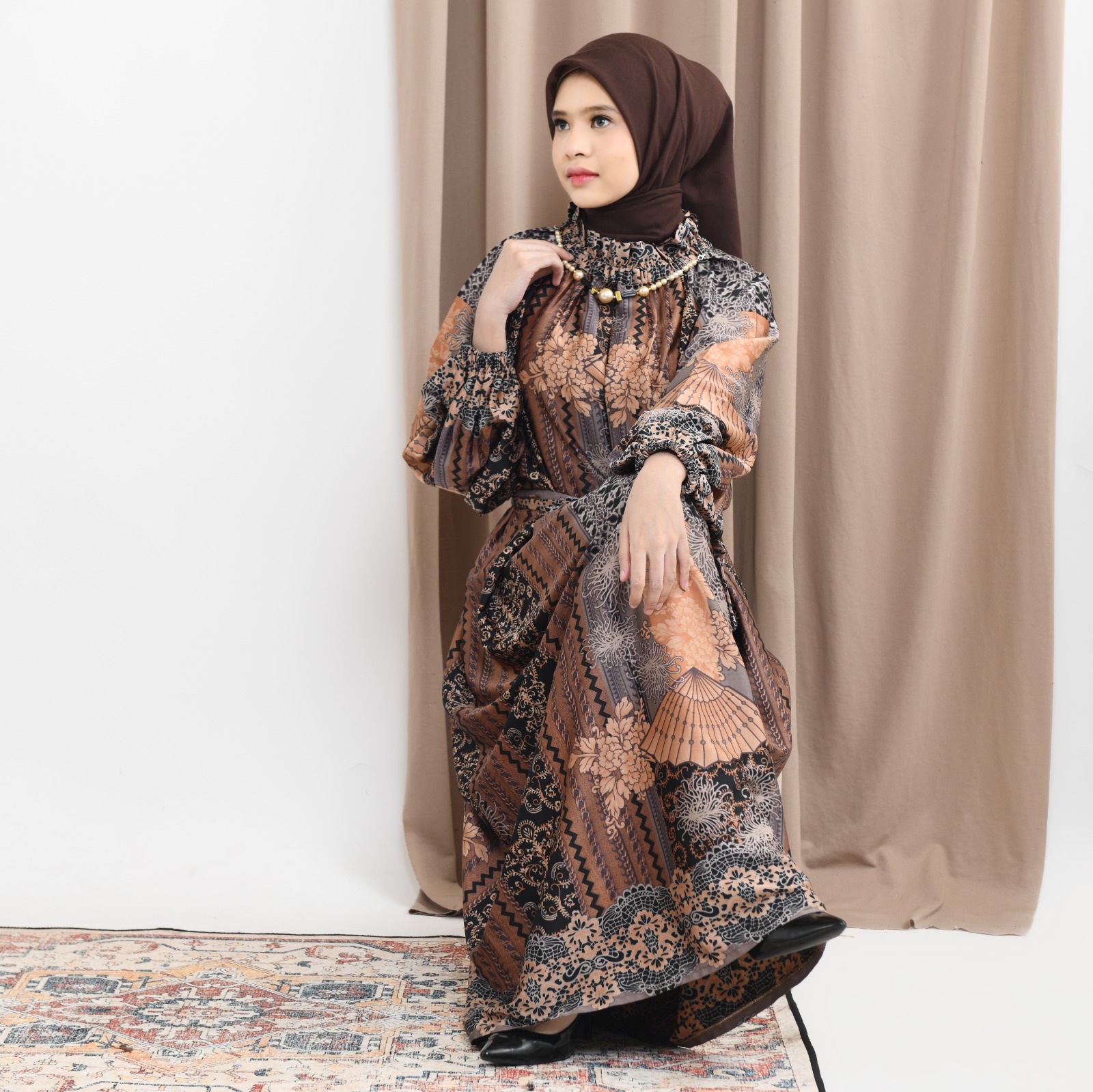 Ridwan & Rahma Moza Dress Silk hadir dengan desain kerah lipit serut yang cantik