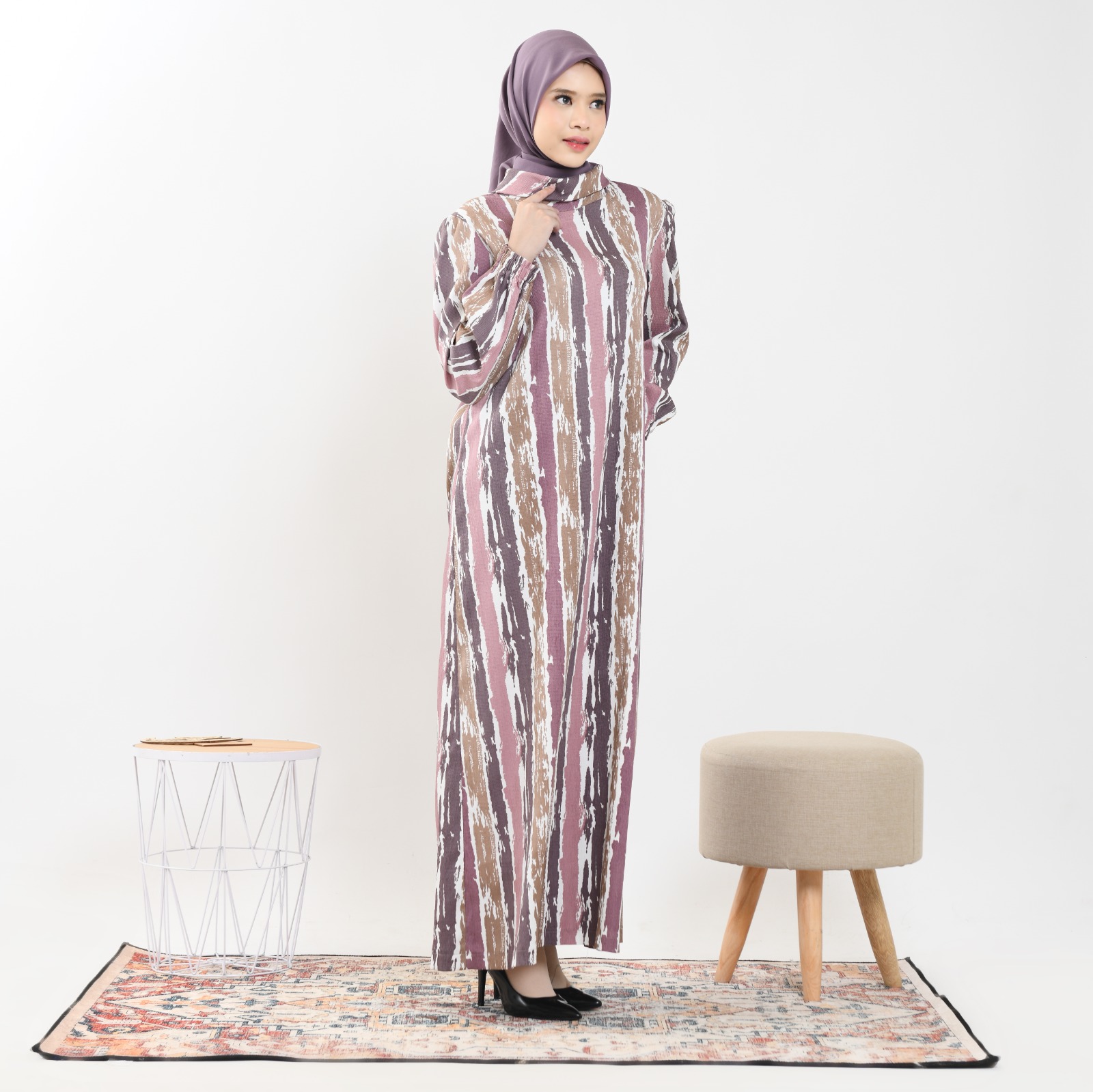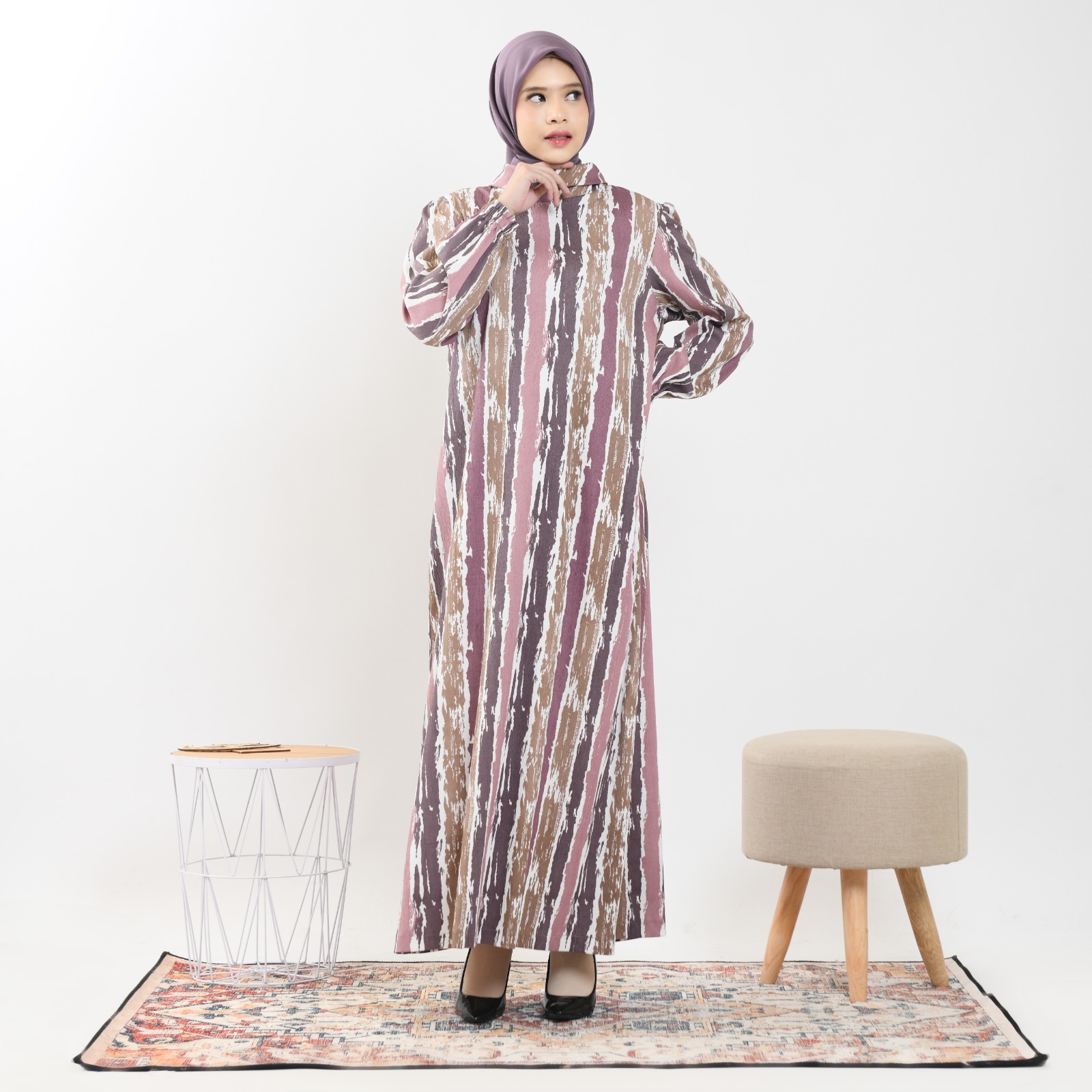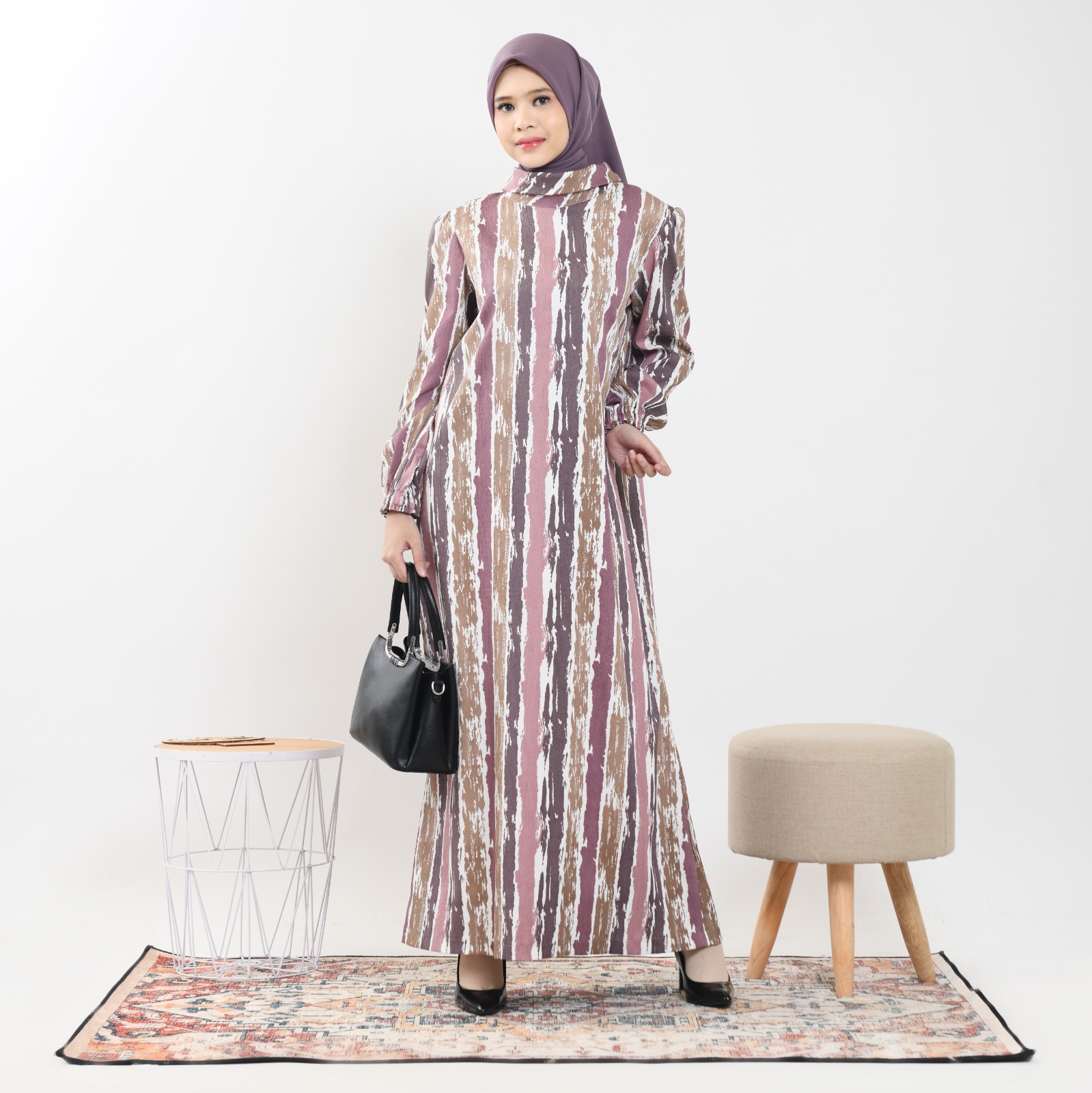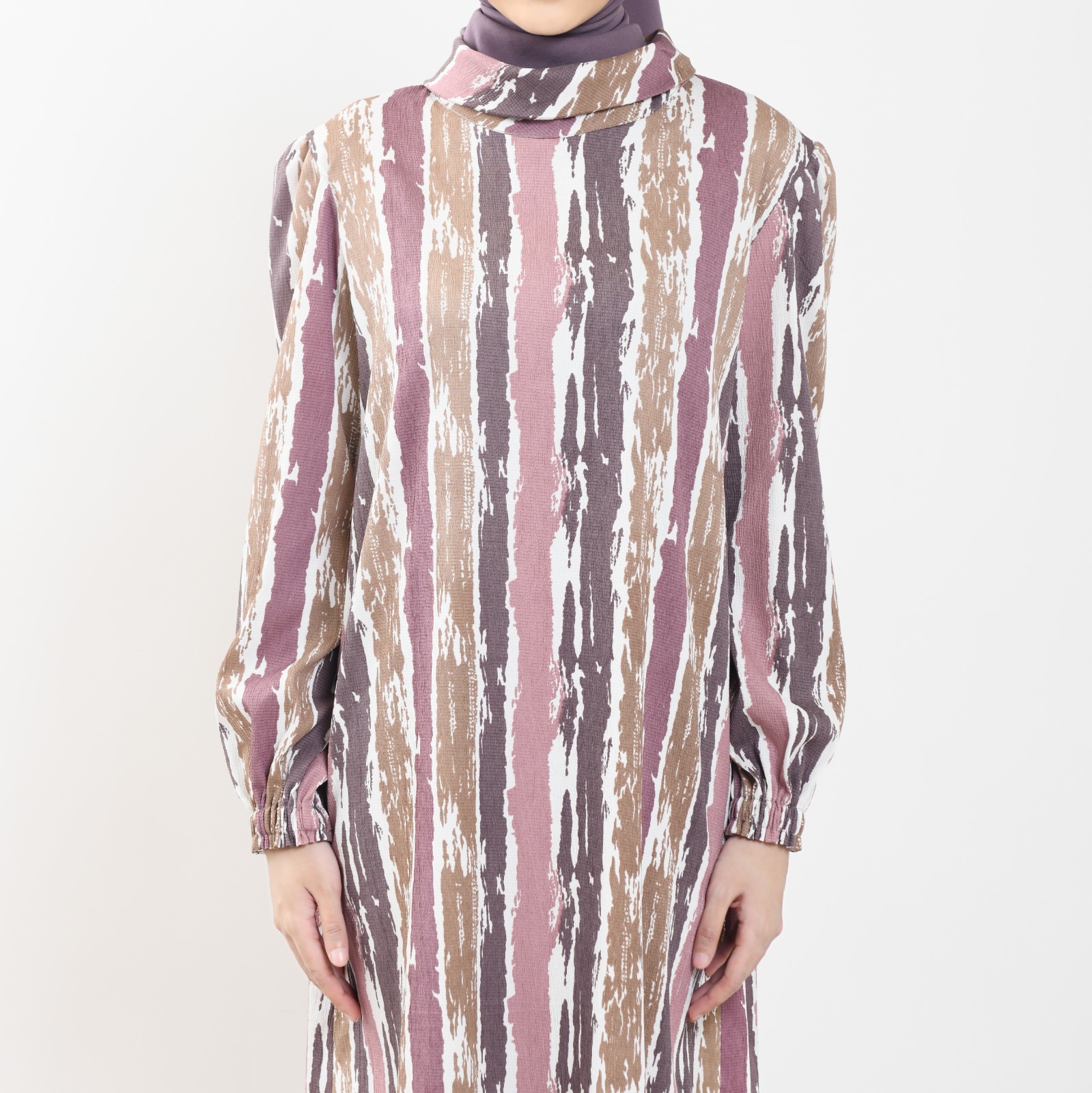 Ridwan & Rahma Collection Tharisa Dress Crinkle Motif hadir dengan desain garisan yang elegan.