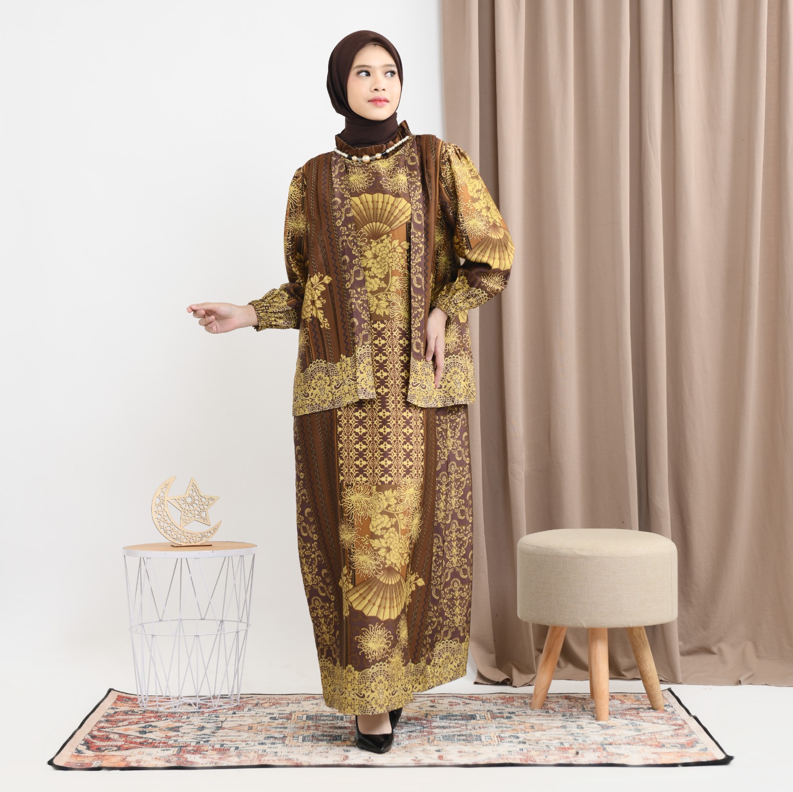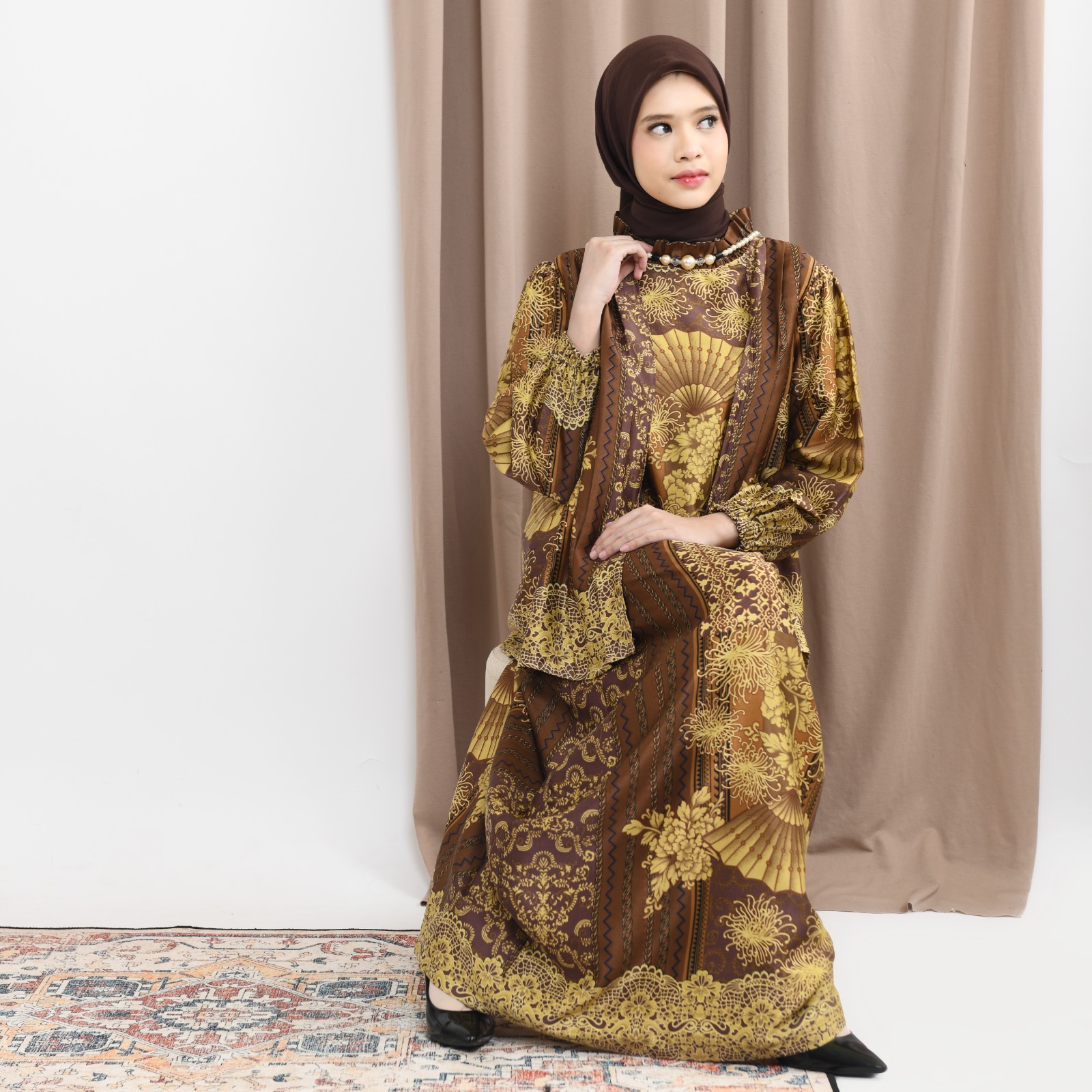 Bahan Silk Motif memberikan tampilan mewah.